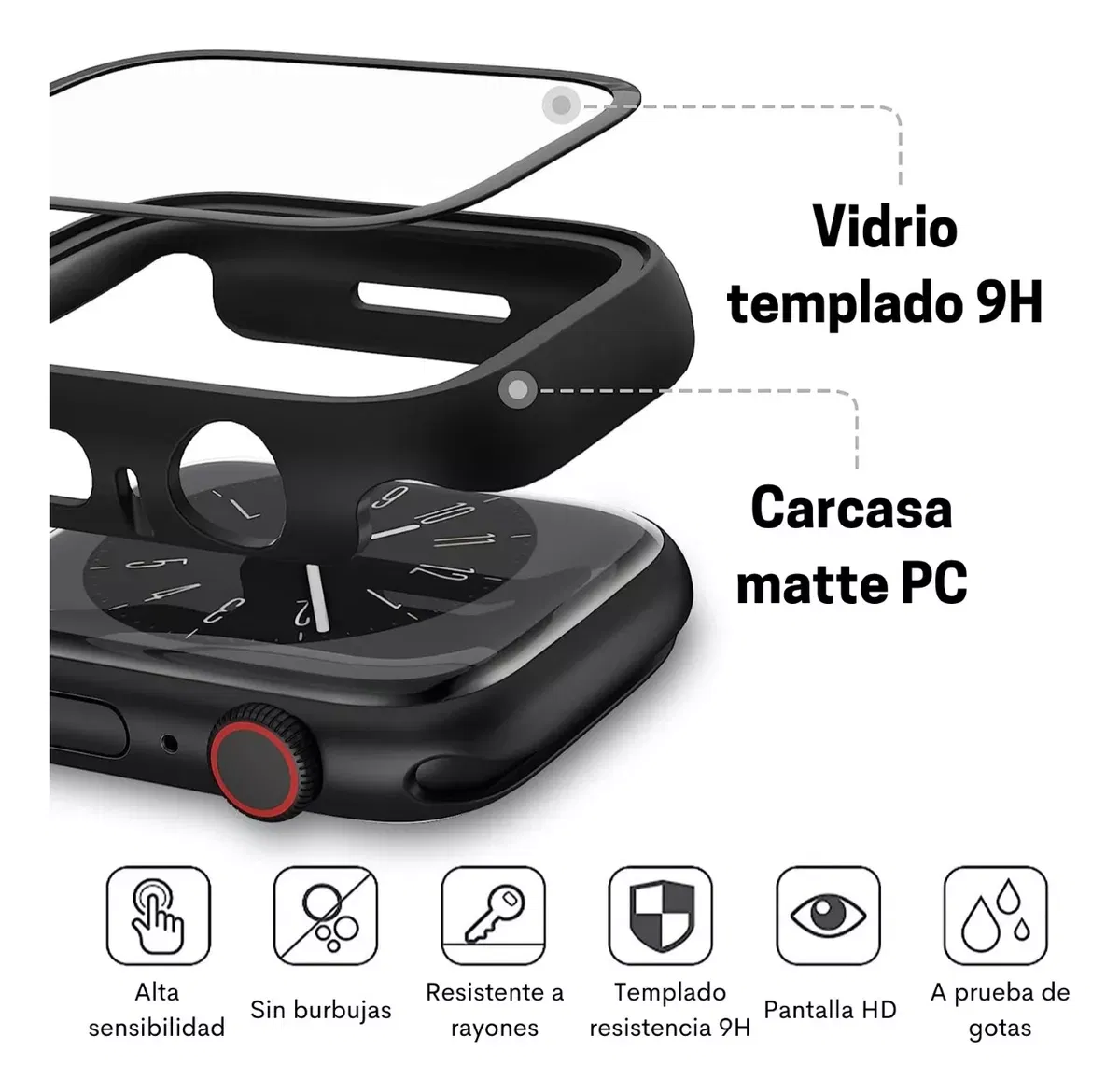 2 EN 1 FUNDA CON TEMPLADO APPLEWATCH. DALE PROTECCION A TU SMARTWATCH SIN MOLESTIAS. PARA IMITACIONES EL TAMAÑO PUEDE DIFERIR UN POCO. SI SU SMARTWATCH NO ES LA VERSION ORIGINAL NO SE RECIBIRAN DEVOLUCIONES EN CASO DE NO ENCASTRAR COMO CORRESPONDE.