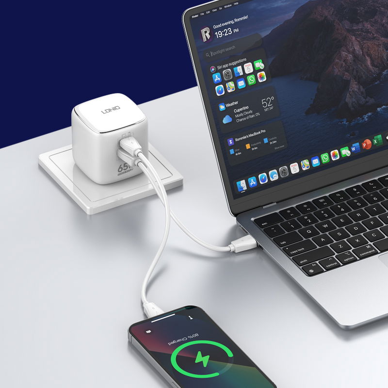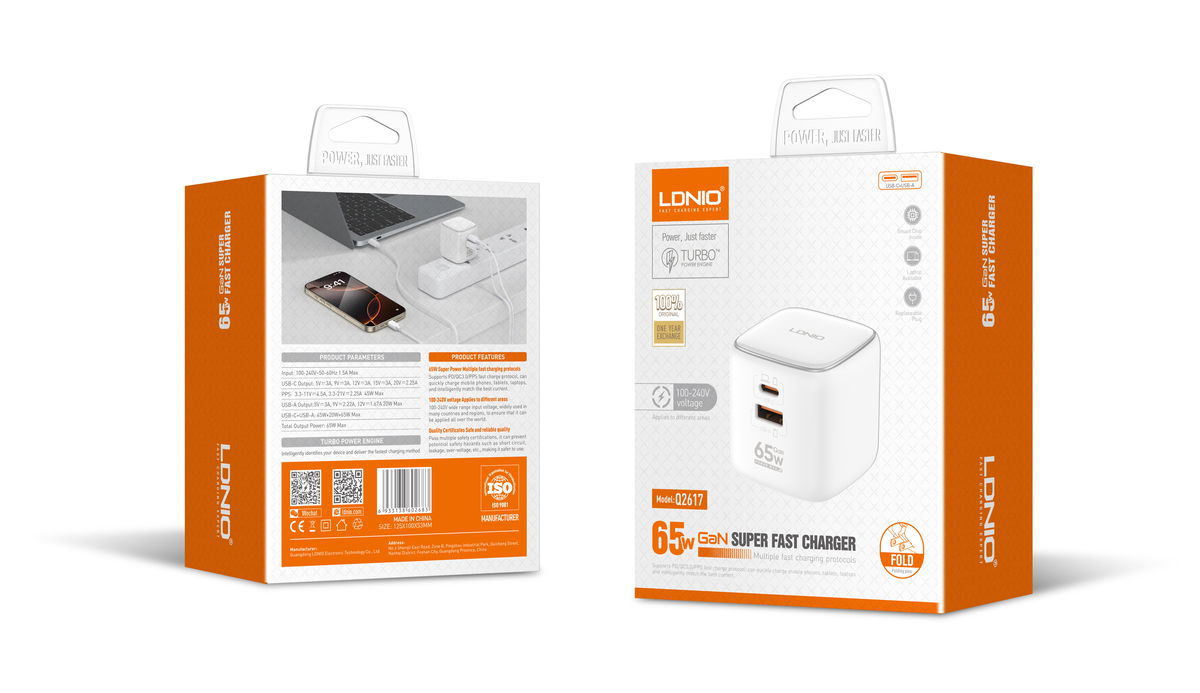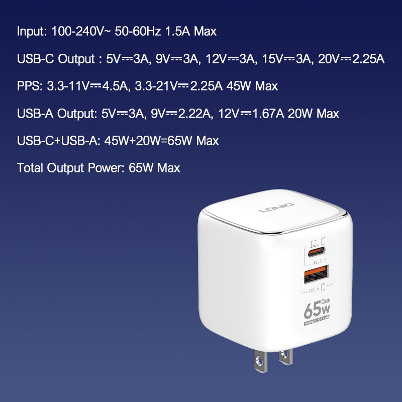 CARGADOR DE PARED Q2617 65W GAN USB C+PD + QC3.0 + PPS + CABLE USB C 1M